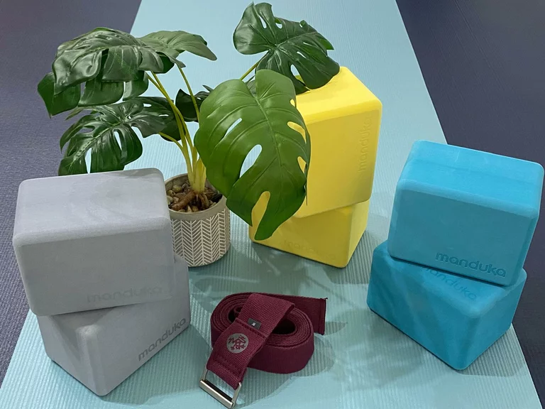 Die Mini Yoga Blöcke (Maße: 10x11,5x15cm) von Manduka® sind federleicht (Gewicht: 200g) und super praktisch für die Reise und die Outdoor-Yoga-Praxis.